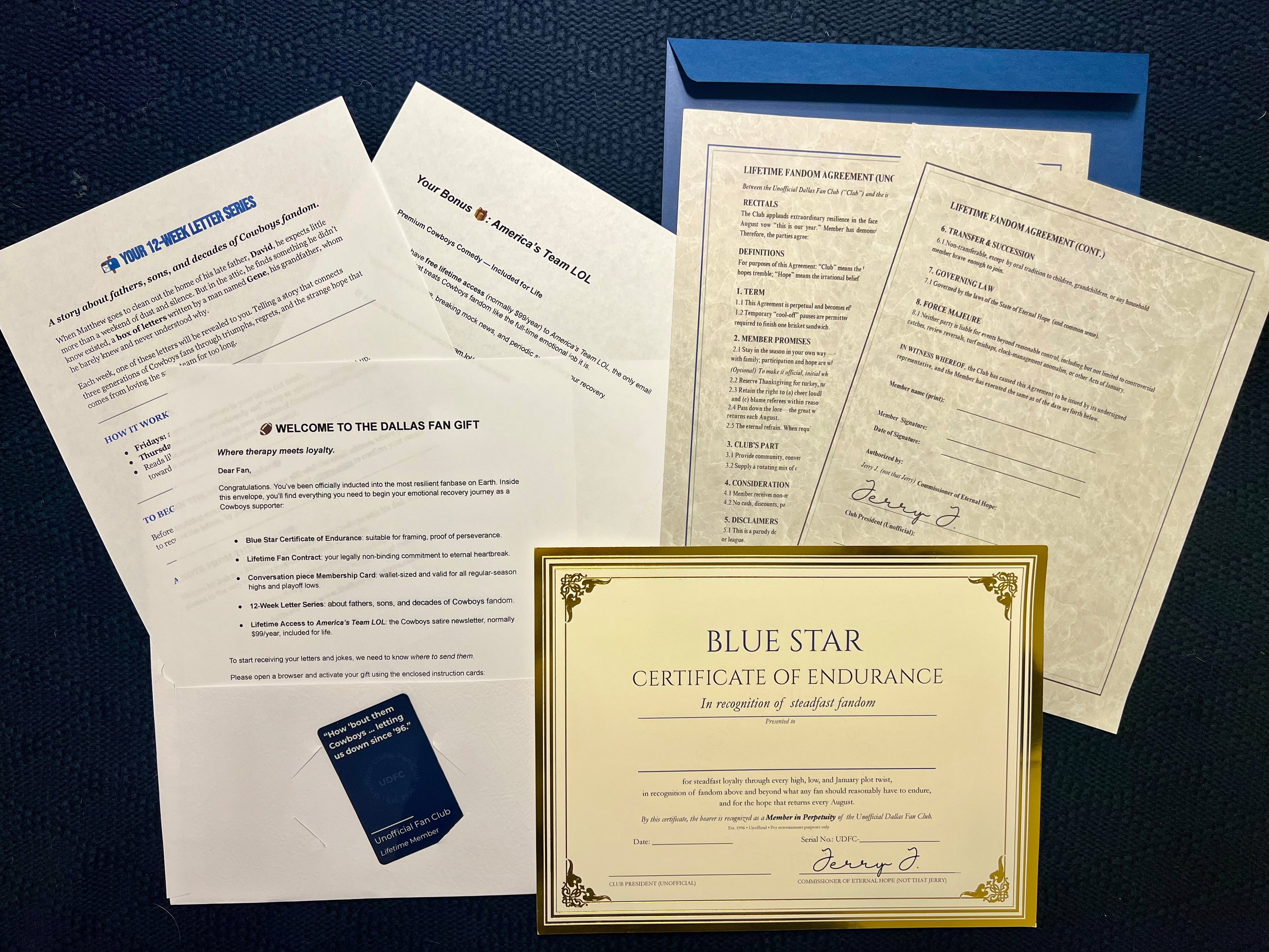 It’s a serialized mystery, a father-son drama, and a time capsule of Cowboys history all rolled into one. Making this a unique, meaningful gift not only for diehard fans, but especially for fathers and families who have shared the highs and lows of Cowboys football across generations.